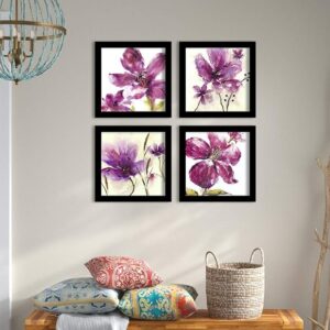 Preety Floral Flower and Leaf in Cone Pot 3 Piece UV Textured Multi-Effect Self adheshive Painting 17 Inch X 17 Inch SANFHX141,Multicolour