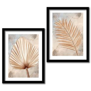 Golden Leaf Wall Decor Paintings for Home Office Living Room – Modern Art Wall Paintings with Frame (11 inch x 14 inch, Framed) Set of 2,Wood