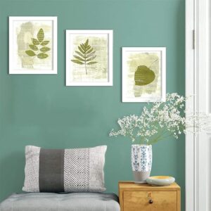 Green Nature Set of 3 White Framed Painting,UV Textured Art Prints (9 x 11 inch)