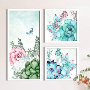 Rose Flowers Framed Painting/Posters for Room Decoration, Set of 3 White Frame Art Prints/Posters(1 Units 22 x 47, 2 Units 22 x 22 cm)
